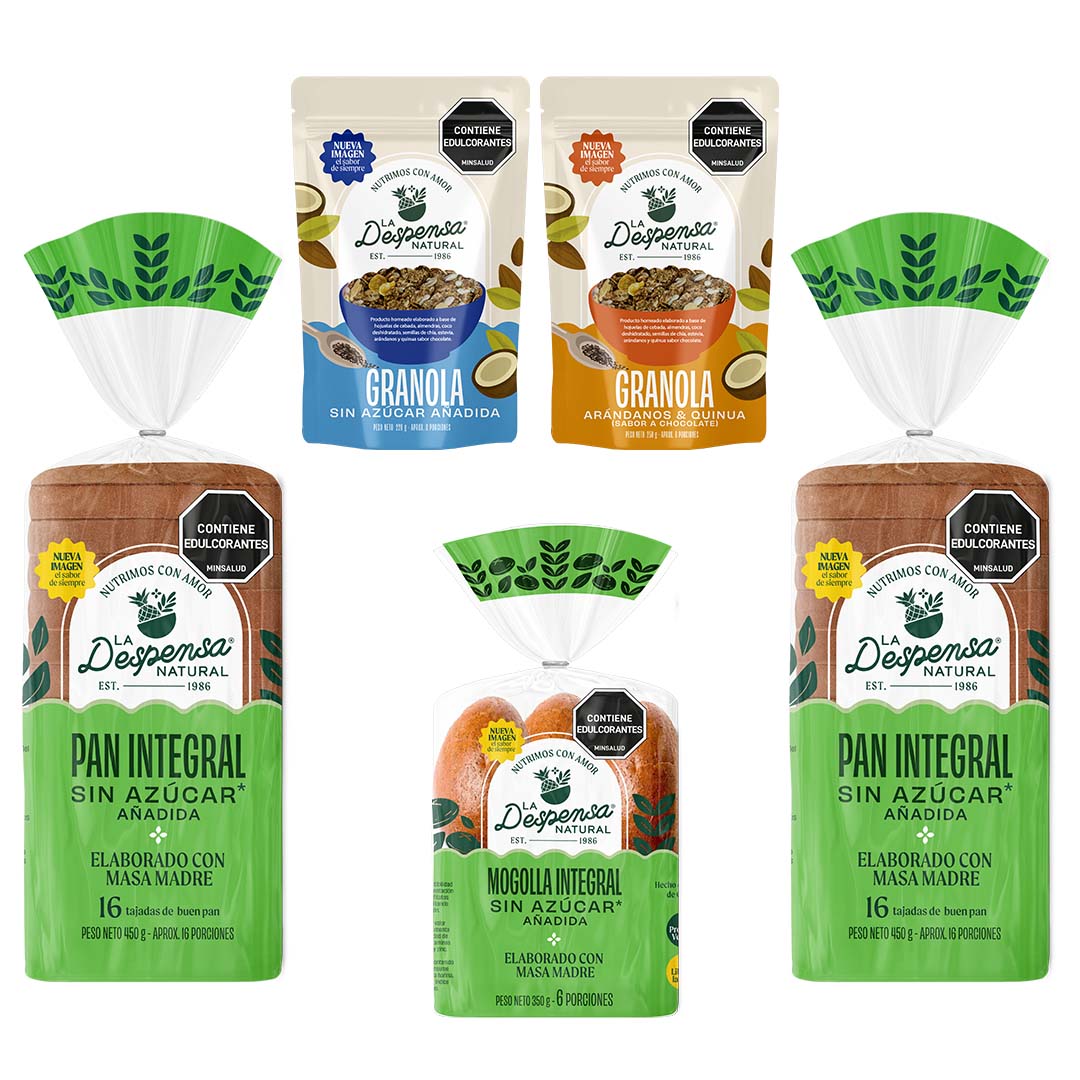 - Contamos con una línea libre de azúcares añadidos que está compuesta por: pan integral sin azúcar añadida, pan integral con omega fibra, Mogolla sin azúcar añadida, tostadas integrales sin azúcar añadida y granola sin azúcar