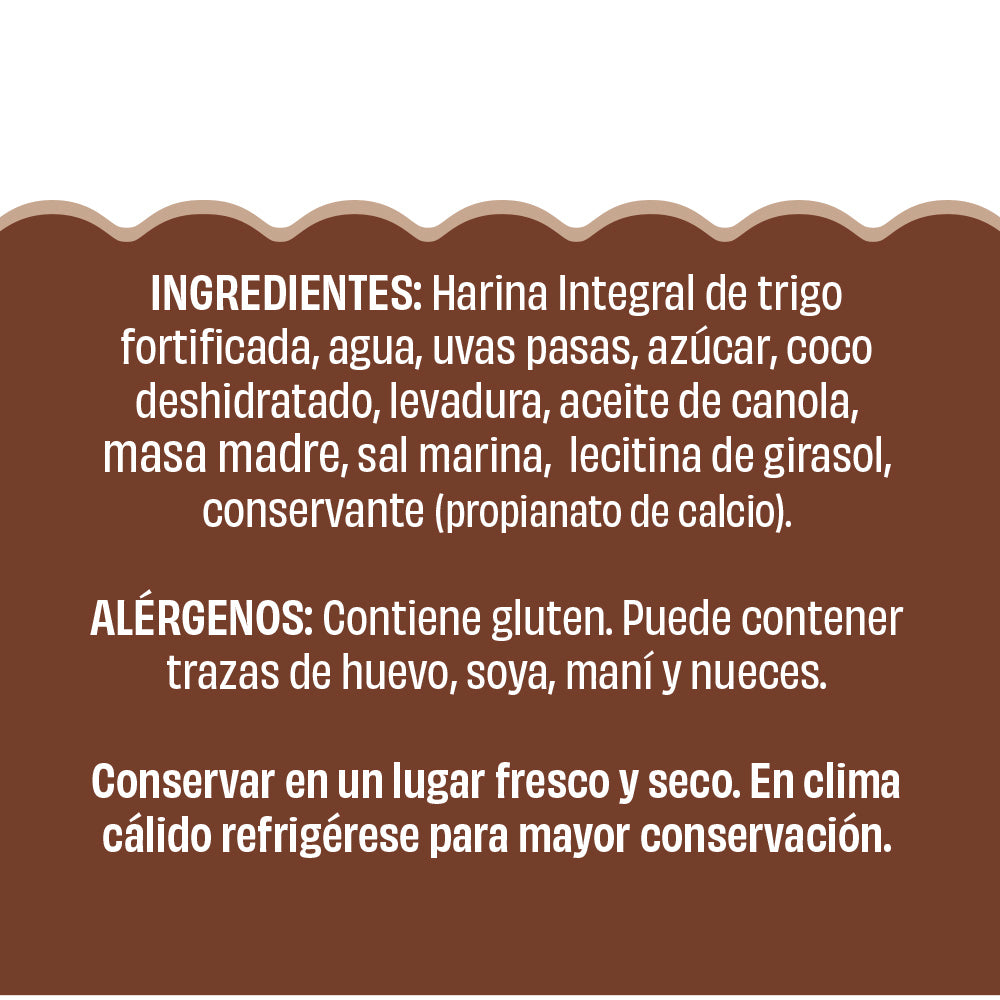 Pan Integral Coco y Pasas con Masa Madre | 450g