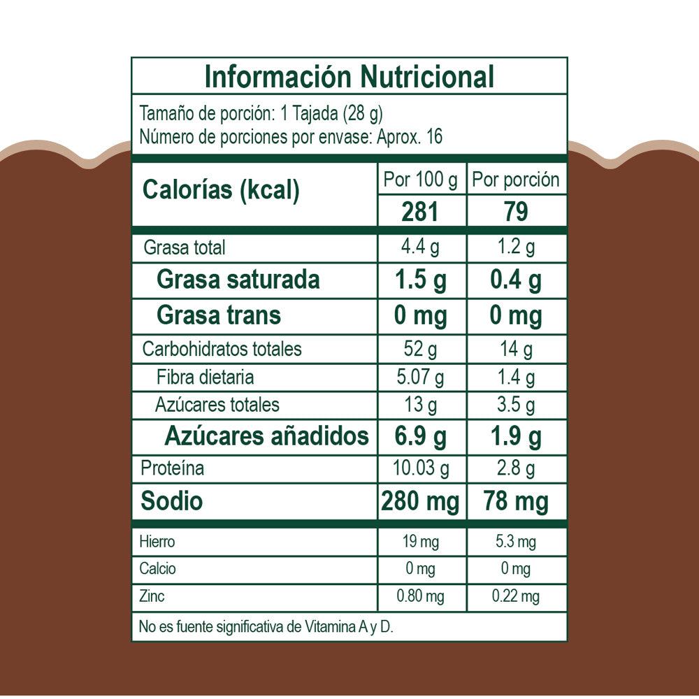 - Alto en fibra: Gracias a la mogolla de trigo y fibra prebiótica